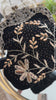Black velvet sling clutch bag with Aari and Mukesh work.